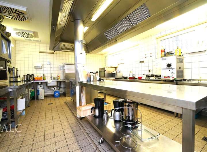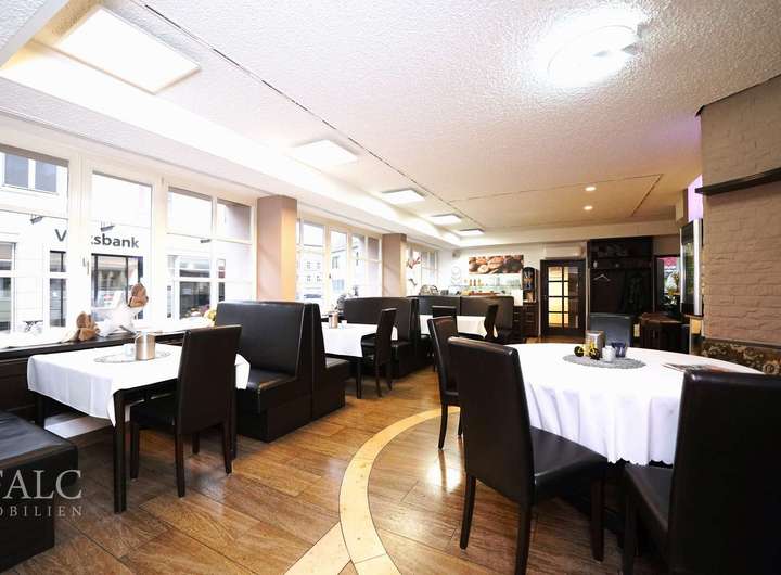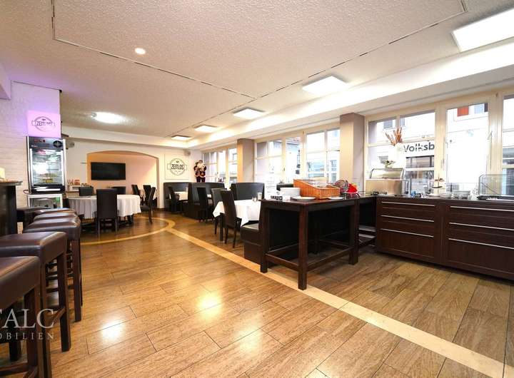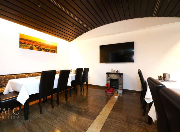 Das Haus verfügt über 2 sep. Eingänge. Der vordere Eingang bietet Ihnen direkten Zugang zum Restaurant. Hier erwartet Sie eine vielversprechende, helle Atmosphäre mit reichlich vielen Sitzplatzmöglichkeiten für bis zu 100 Gäste. Highlight im Restaurant ist das Séparée gegenüber der Theke. Eine voll ausgestattete sep. Restaurantküche lässt ebenfalls keine Wünsche offen. Für einen Barbereich in der Mitte des Restaurants ist ebenfalls gesorgt. Zusätzlich werden Ihnen hier 3 sep. WC-Räume geboten. Für Abstellmöglichkeiten oder als Vorratsräume gedacht, bieten sich im Restaurant ebenfalls mehrere Räumlichkeiten an. Das Restaurant ist derzeit nicht verpachtet und sehnt sich nach einem neuen Betreiber!