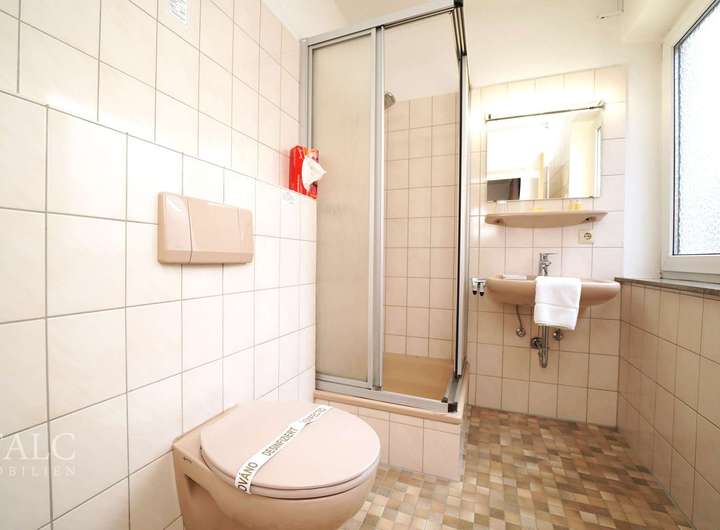 Im hinteren Bereich des Hauses gelangen Sie in die Hotelanlage und die dazugehörigen Wohnungen. Angekommen im 1. Obergeschoss erwartet Sie hier eine ehemalige Hotelanlage, die bestens an Monteure vermietet werden kann. Hier erwarten Sie 8 Zimmer, die individuell genutzt werden können. Sei es als erneute Hotellerie oder im Idealfall zur Vermietung an Montagefirmen gedacht. Hier können Sie bis zu 15 Betten auf dieser gesamten Etage realisieren! Jedes Zimmer verfügt über ein Bad mit WC. Einer der Räumlichkeiten kann als Küchenzimmer umgebaut werden. Somit gäbe es für Monteure einen gemeinschaftlichen Küchen- und Pausenbereich.