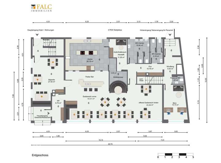 Für das Restaurant und die Hotelanlage erwartet Sie eine vermietbare Gesamtfläche von insg.: 384,80 m²