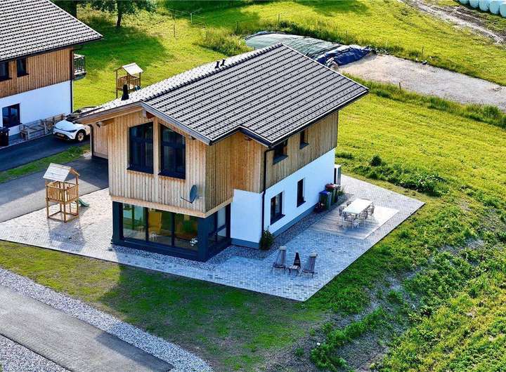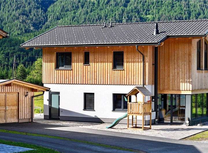 Nestled in the serene alpine hamlet of Obermöschach near Nassfeld, this exceptional property offers the perfect blend of luxury and mountain charm. Boasting three beautifully appointed bedrooms plus a versatile loft and two modern bathrooms, the home features a spacious open plan living room with a cozy fireplace ideal for unwinding after a day on the slopes or trails. The gourmet kitchen, equipped with premium Siemens appliances, flows seamlessly into the living area, enhancing the sense of space and light. Step outside to a private paved backyard, perfect for relaxing or entertaining, while the prime corner lot ensures unmatched panoramic views of majestic peaks and lush fields. Wellness and productivity thrive here with a dedicated gym featuring a sauna and a private office retreat. A breathtaking winter garden invites year round enjoyment of the stunning surroundings, and ample parking for 2-3 vehicles completes this alpine sanctuary, blending modern comfort with timeless natural beauty.