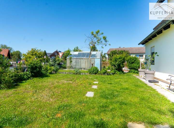 Der Garten des Grundstücks bietet reichlich Platz für Freizeitaktivitäten. Über das liebevoll angelegte Gewächshaus freuen sich die Bewohner mit einem grünen Daumen und der helle Wintergarten im Erdgeschoss ladet sowohl zum Verweilen als auch zum Feiern ein, selbst an regnerischen Tagen.