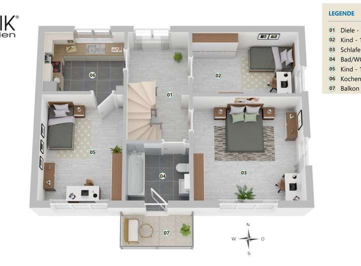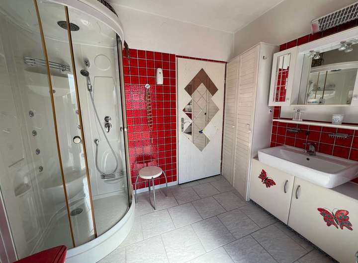 Die Räumlichkeiten der Doppelhaushälfte sind großzügig gestaltet und bieten viel Platz für eine Familie. Neben den 6 Schlafzimmern gibt es noch ein zusätzliches Zimmer, das vielseitig genutzt werden kann. Die beiden Badezimmer sind funktional ausgestattet und bieten Komfort. Der Balkon lädt zum Verweilen im Freien ein und bietet einen schönen Ausblick.