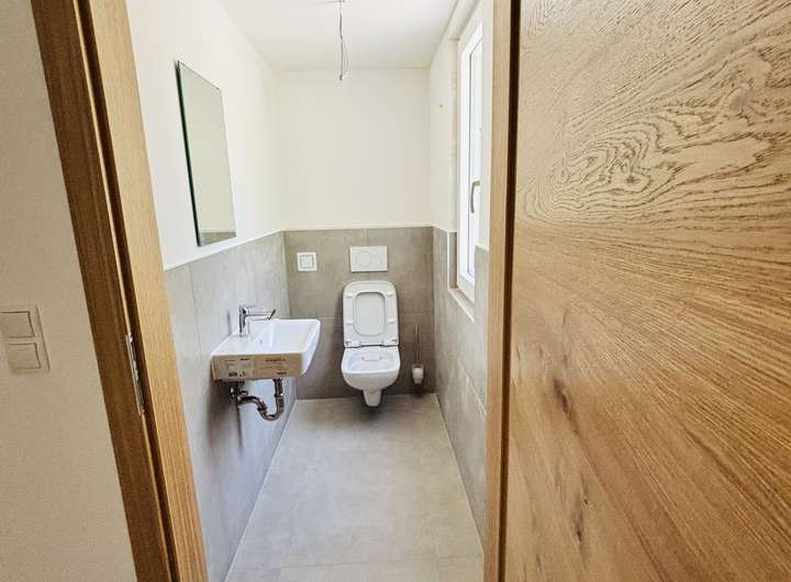 Bei dem dreistöckigen Reihenendhaus handelt es sich um einen Erstbezug in eine ansprechende Immobilie, die durch eine gehobene Innenausstattung besticht und ab sofort zum Verkauf steht. Neben fünf schönen Zimmern gibt es auch ein separates WC für Gäste. Das 2025 erbaute Gebäude wird per Wärmepumpe beheizt. Der Bedarfsausweis der Immobilie ist aktuell und liegt vor.