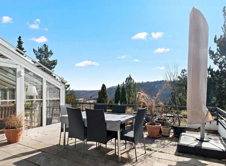 Der großzügige Eingangsbereich im Erdgeschoss mit separater Garderobe lässt Sie sofort Zuhause ankommen. Hier angrenzend erwartet Sie das lichtdurchflutete Wohnzimmer mit offenem Kamin sowohl im Innenbereich als auch im angrenzenden "kalten Wintergarten". Die Sommerabende können Sie auf der Terrasse mit Blick über Ebingen ausklingen lassen. Für gemütliche Atmosphäre sorgt die moderne und offene Küche mit hellem Essbereich und zusätzlicher Speisekammer. Der Hauswirtschaftsraum mit Waschmaschinenanschluss komplettiert das Erdgeschoss.