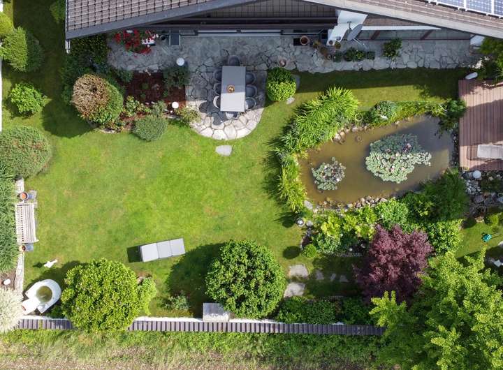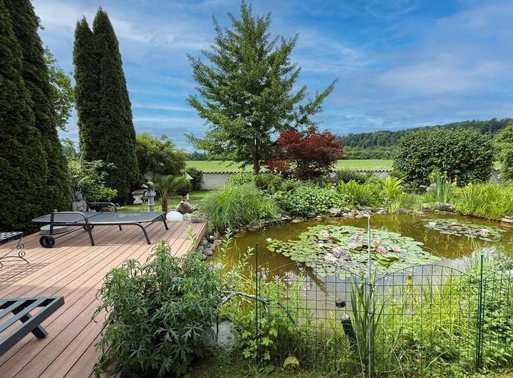 Das massiv gebaute Haus mit Satteldach und 2-fach-Verglasung bietet höchsten Wohnkomfort auf einem weitläufigen Grundstück von ca. 1.143 m² mit Schwimmbad, Sauna und großem Hobbykeller.