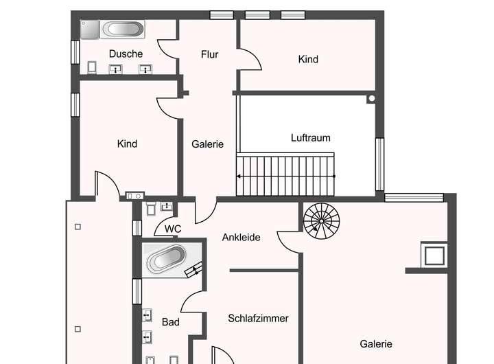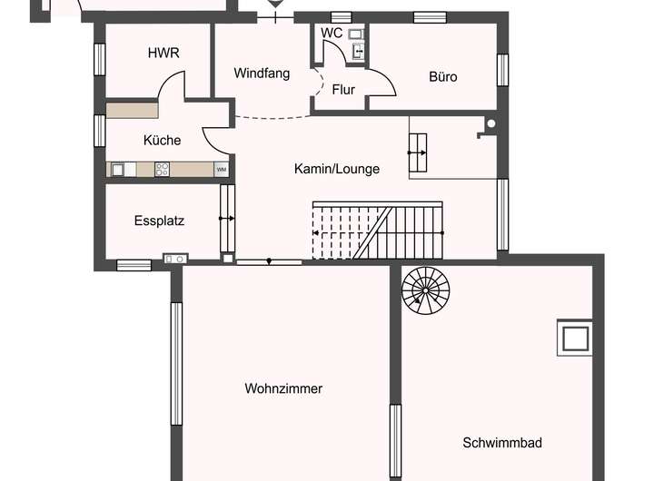 * Treppe: Betontreppe mit Fliesenbelag, Wendeltreppe UG bis OG