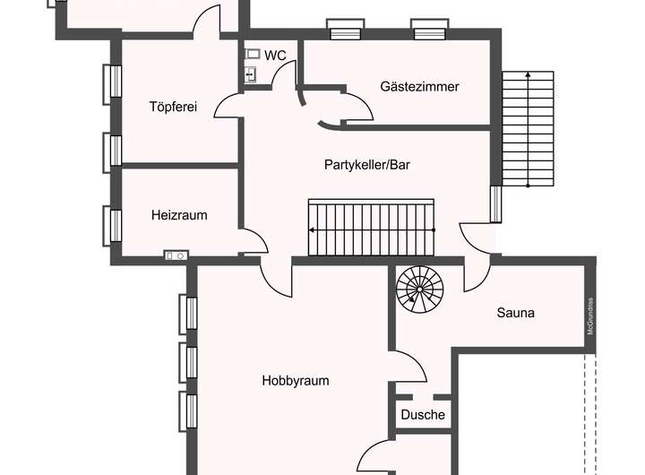 * Weiteres: Partykeller mit Bar, Billiard- und Töpferraum