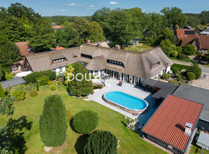 Entdecken Sie dieses wunderschöne und exklusive Anwesen in Boltersen, einem malerischen Ort in Niedersachsen, nur 10 Autominuten von der historischen Hansestadt Lüneburg entfernt. Umgeben von einem mit 7971 m² großen, sehr großzügigen und teilweise parkähnlichen Außenbereich, bietet diese Immobilie mit Sylter Flair nicht nur Ruhe und Idylle, sondern auf 520 m² Wohnfläche auch einen idealen Rückzugsort.