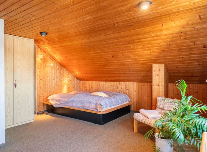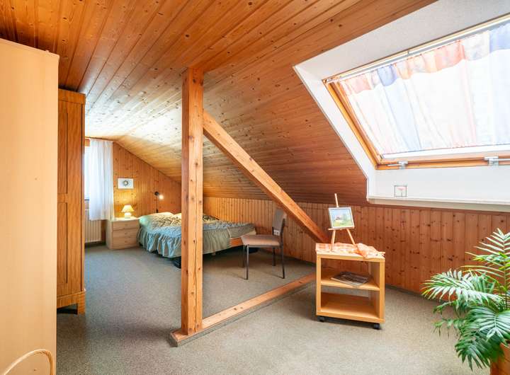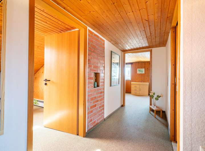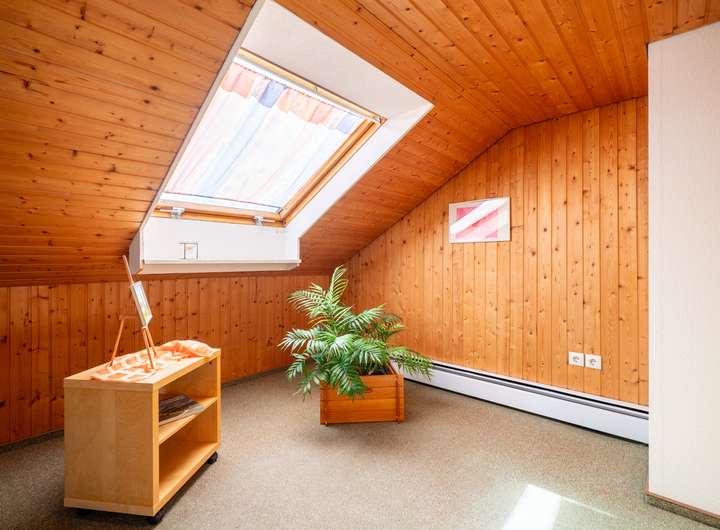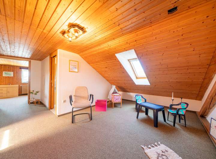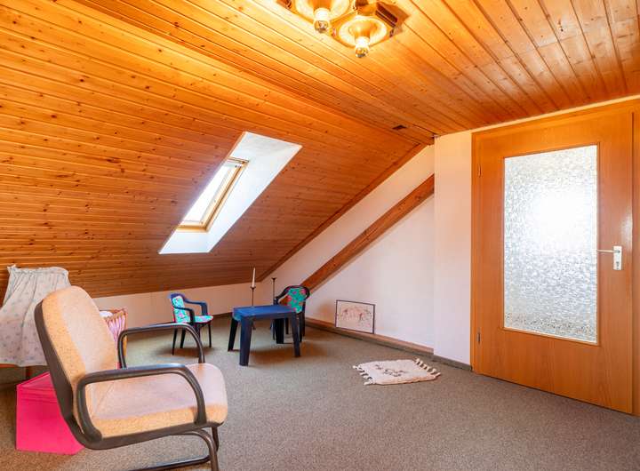Das Dachgeschoss ist geprägt von vielen Holzelementen. Es wurde in den 80ern ausgebaut und hat eine Deckenhöhe von zwei Metern, welche diese Etage im Zusammenspiel mit viel Holz viel Gemütlichkeit versprühen lässt. Ideal auch für Gäste, die hier Ihren eigenen Bereich haben. Ein geräumiger Eingangsbereich, ein WC und zwei weitere große Zimmer zur individuellen Nutzung vergrößern Ihre tollen Optionen in diesem Haus.
