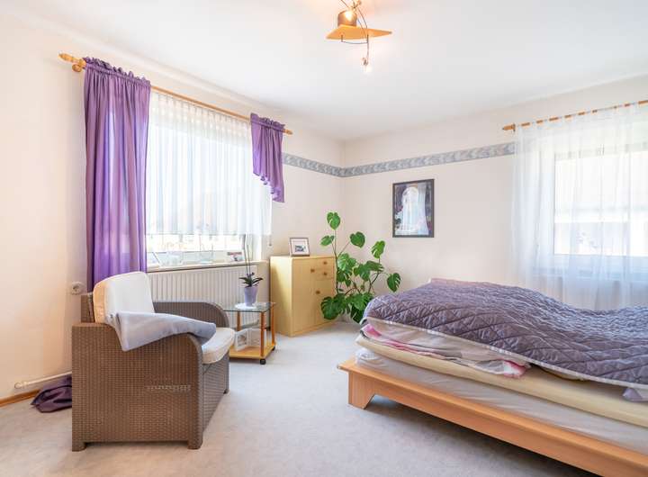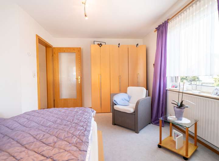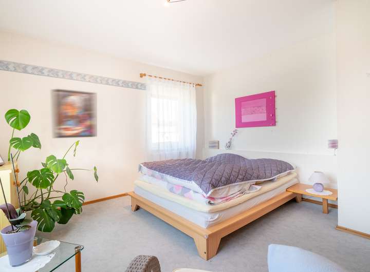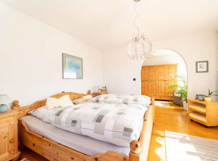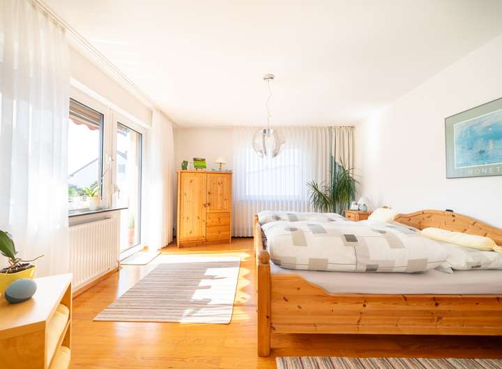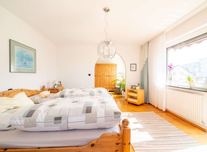 Im Obergeschoss finden Sie eine weitere, in sich geschlossene Wohnung. Diese wird im Moment zwar ganzheitlich mit den anderen Etagen genutzt, kann aber auch separiert und vermietet werden. Hier finden Sie im Moment ein Großes Schlafzimmer mit Ankleide und Zugang zum sonnenverwöhnten Balkon. Ein weiterer Rückzugsort, wie auch ein Gästezimmer und ein weiteres Zimmer zur präferierten Nutzung spiegeln hier die momentane Aufteilung wieder.