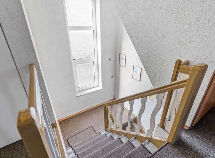 Das Haus verfügt über Teppich-, Laminat- und Fliesenböden, ein Gäste-WC sowie einen großzügigen Keller mit viel Stauraum. Im Obergeschoss finden sich drei geräumige Schlafräume, die zum Erholen und Wohlfühlen einladen.