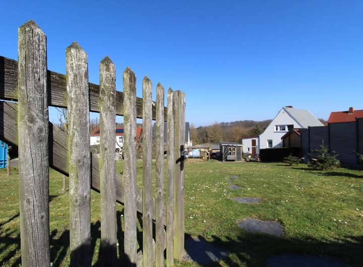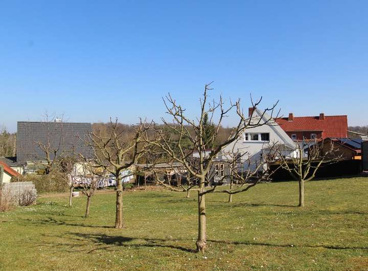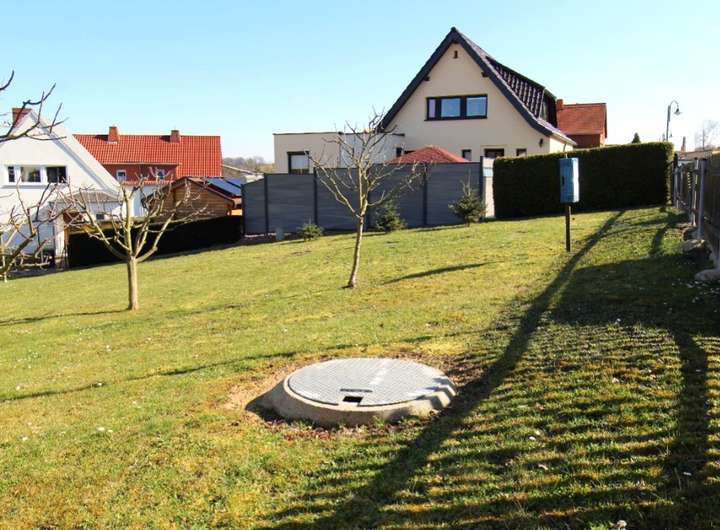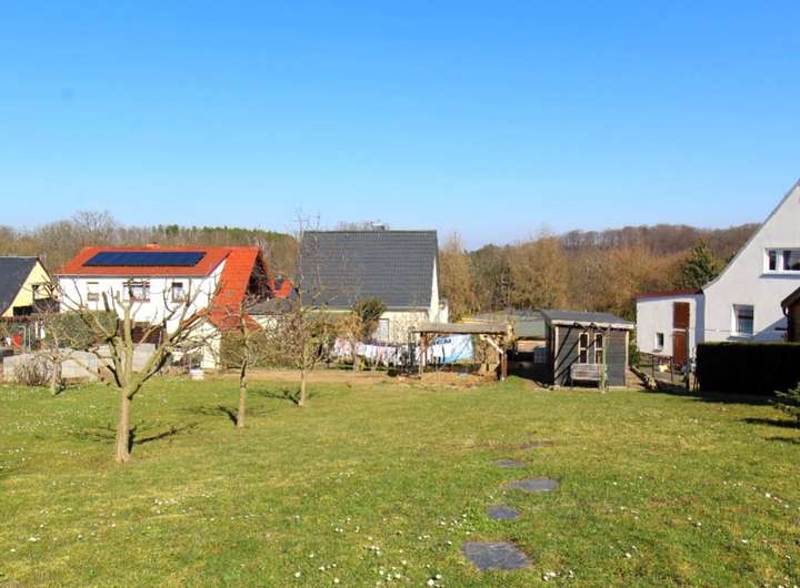 Durch die leichte Hanglage ist eine Vollunterkellerung von Vorteil. Das Grundstück bietet weiterhin Platz für eine Garage, Stellplätze und Gartennutzung