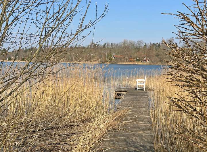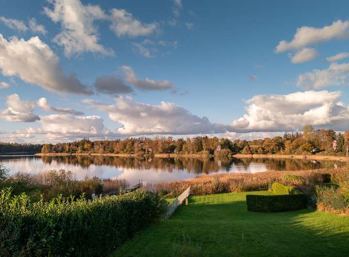 Die weite Rasenfläche, über die Sie direkt an den See mit eigenem Steg gelangen, können Sie zum Entspannen nutzen. Hier erwartet Sie auch noch eine versteckte Terrasse, wo Sie in den Abendstunden den Sonnenuntergang auf dem See genießen können – ein wahres Idyll!