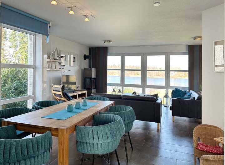 — Heller Wohnbereich mit Blick auf das Wasser