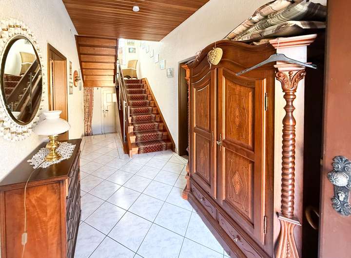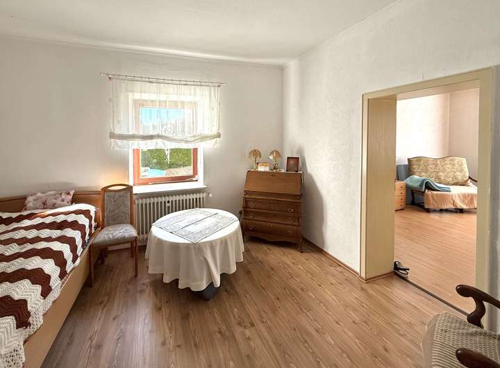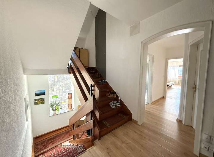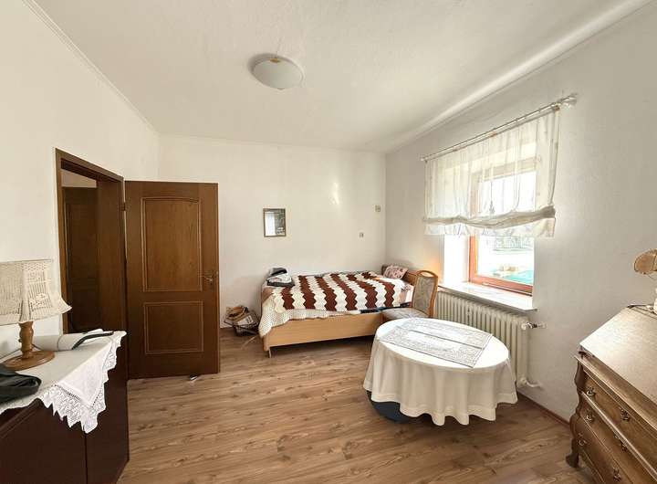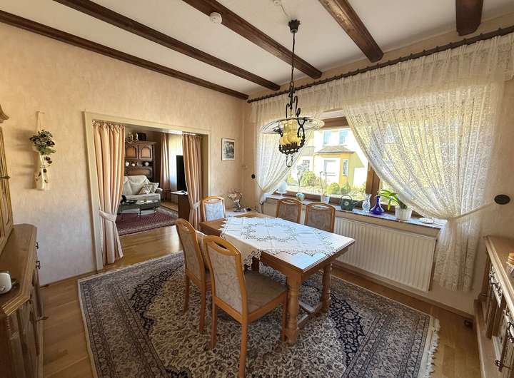 Das Einfamilienhaus fand seinen Ursprung um ca. 1903 und bietet mit ca. 234,50 m² Wohnfläche, verteilt auf 2 Vollgeschosse, reichlich Platz. Es liegt in einem Mischgebiet. Aktuell als EFH genutzt, bietet das Objekt bei Umbaumaßnahmen Potenzial für bis zu 4 WE. Ob für eine große Familie, Hobbys, Kapitalanlage oder Wohnen & Arbeiten. Der frühere Laden mit großer Fensterfront und ebenerdigem Zugang eignet sich ideal als Gewerbefläche, Büro oder Atelier. Im Erdgeschoss finden Sie insg. 6 Räume nebst Küche und einem Duschbad vor. Zwei Lagerräume mit Zugang zur Terrasse und ein WC runden das Angebot der Etage ab. Das Obergeschoss stellt 4 weitere Schlafzimmer (eines mit Küchenanschlüssen), eine Ankleide/Büro (ehem. Balkon) sowie ein Dusch-/Wannenbad zur Verfügung. Der Dachboden über eine massive Holztreppe zu erreichen. Das rd. 790 m² große Grundstück stellt neben zwei Gärten auch eine uneinsehbare Terrasse und viel Freifläche bereit. Als Parkmöglichkeiten stehen eine Garage sowie zwei bis drei Außenstellplätze und ein Carport zur Verfügung. Das Wohngebäude ist vollunterkellert und beherbergt insgesamt sechs Kellerräume. Durch Anbringung einer Außentreppe könnten im Wohnhaus 2 separate Einheiten entstehen. Der ehem. Ladenteil sowie der darüber liegende Bereich würden durch Umbau/Ausbau 2 weitere Wohneinheiten hergeben.