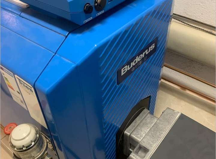 Die Heizung ist eine Öl-Zentralheizung (Buderus, 23 kW) und Warmwasser läuft über Heizung. Es besteht ein Solarmodul auf dem Dach, das aber nicht angeschlossen ist.