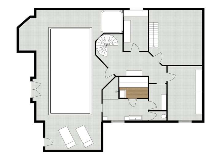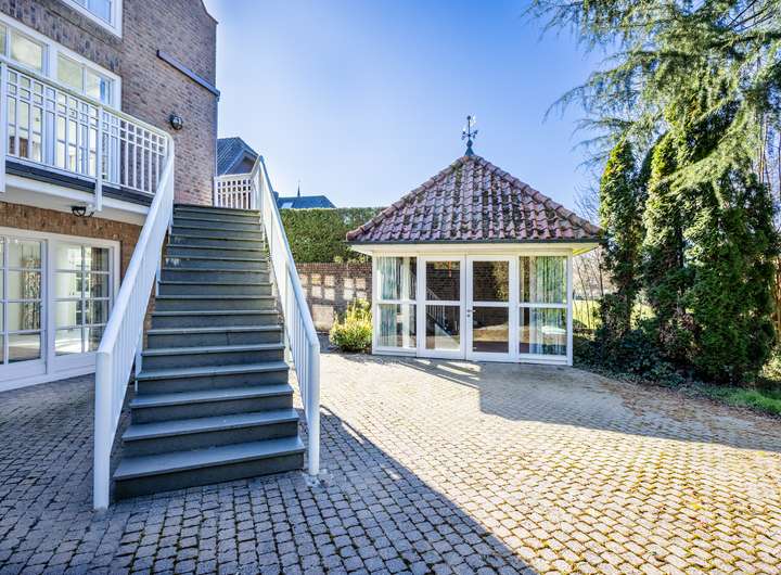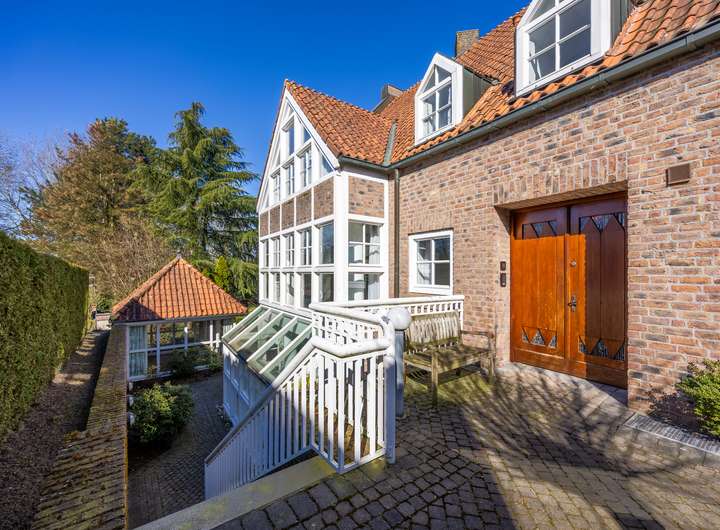Willkommen in diesem beeindruckenden Anwesen in Kalkar – ein architektonisches Highlight, das Stil, Komfort und eine exklusive Lage miteinander vereint. Auf einem großzügigen Grundstück von ca. 2.078 m² bietet dieses einzigartige Architektenhaus aus dem Jahr 1989 eine Wohnfläche von 341 m², die sich auf sieben Zimmer und drei Etagen verteilt. Bereits beim Betreten der hellen Diele mit edlem Marmorboden spürt man die besondere Atmosphäre. Der offene Grundriss verbindet die großzügige Küche, den Essbereich und das lichtdurchflutete Wohnzimmer mit einem eindrucksvollen Kamin harmonisch miteinander. Ein Wintergarten mit hoher Deckenkonstruktion bietet einen geschützten Rückzugsort. Im Obergeschoss finden Sie eine Galerie mit Blick in den Wohnbereich und den herrlichen Garten, ein Hauptschlafzimmer mit privatem Bad sowie zwei möglichen Kinderzimmern mit einem separatem Bad. Das Dachgeschoss ergänzt das Platzangebot mit zwei weiteren großzügigen Zimmern und einem Gästebad. Im Untergeschoss erwartet Sie eine Wellness-Oase mit Schwimmbad, Whirlpool und Sauna. Der direkte Zugang zum weitläufige Garten mit zwei Terrassen und einem Gartenhaus lädt zum Entspannen ein, sodass die Wellnessetage ein ganzjähriges Highlight ist. Das vollständig eingefriedete Grundstück sorgt für absolute Privatsphäre und bietet einen sicheren Rückzugsort. Die Doppelgarage mit elektrischem Tor fügt sich harmonisch in das Gesamtbild ein und bietet zusätzlichen Komfort. Hier verbinden sich Eleganz und einladender Wohnkomfort in einer idyllischen und dennoch sehr zentralen Lage.