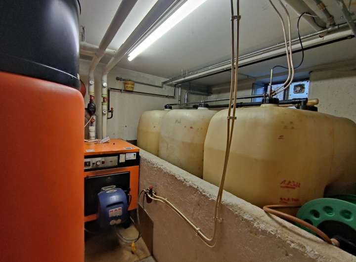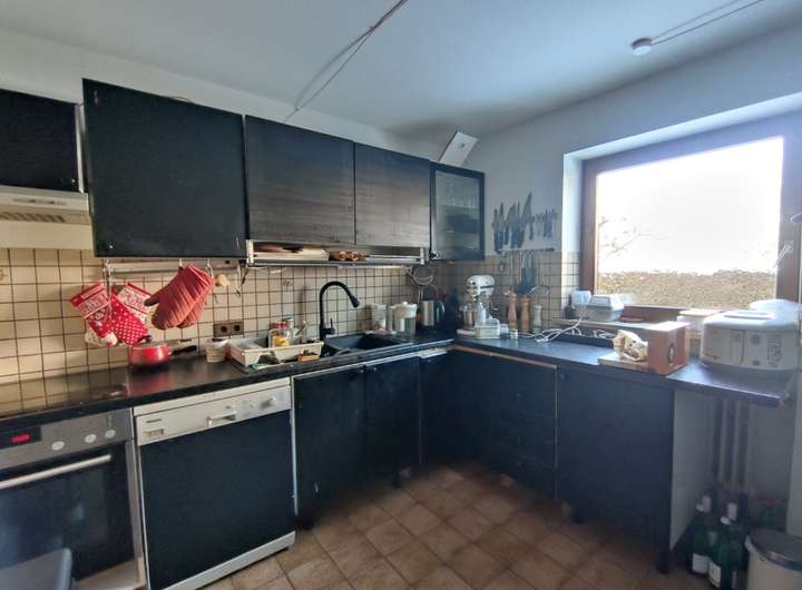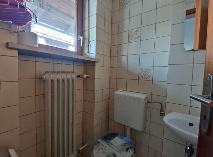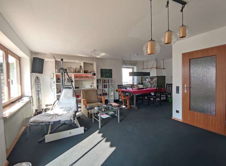 Die 1982 erbaute DHH ist mit Fliesenböden und Laminatböden (teilweise PVC) ausgestattet, der teilweise verlegte Teppichboden ist nicht fest verklebt. Das Haus ist technisch mit 3 Heizsystemen ausgestattet, Öl-Heizung, Wärmepumpe für Brauchwasser und Holzofen zum Heizen im Keller, der die Wärme nach oben in das darüberliegende Wohnzimmer weiterleitet. Sie sind somit sehr breit und kostengünstig von den Verbrauchskosten aufgestellt, dies ist speziell in der heutigen Zeit sehr positiv im Bereich der Energieversorgung flexibel aufgestellt zu sein. Das gesamte Gebäude ist unterkellert. Die 3 Garagen sind zu je 1,5 Anteile für jede DHH zur Nutzung rechtlich gesichert.