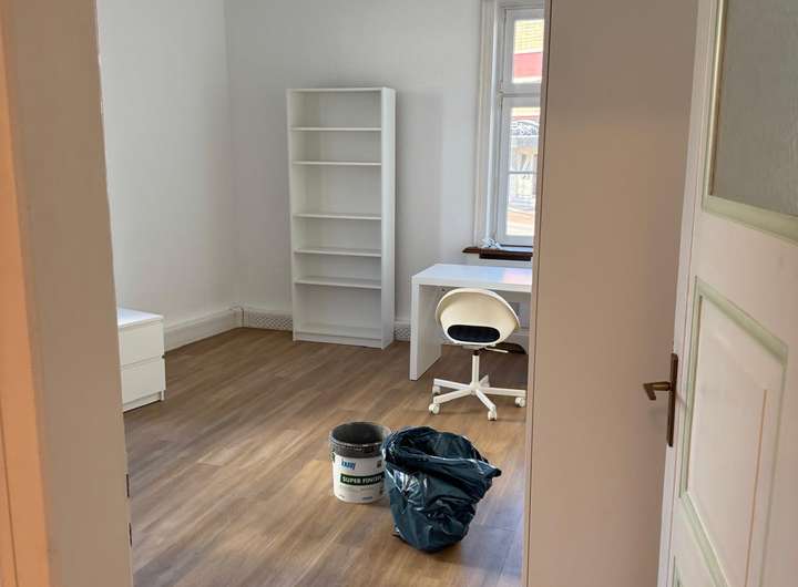 Wie für modern ausgestattete WG üblich, gehören zum einladenden Zimmer auch zwei Badezimmer sowie ein separates Gäste-WC. Des Weiteren überzeugt der gute Schnitt, der auch für WGs geeignet ist. Auch eine Einbauküche gehört zur Wohnung und bietet Stauraum für Ihr Küchenequipment.