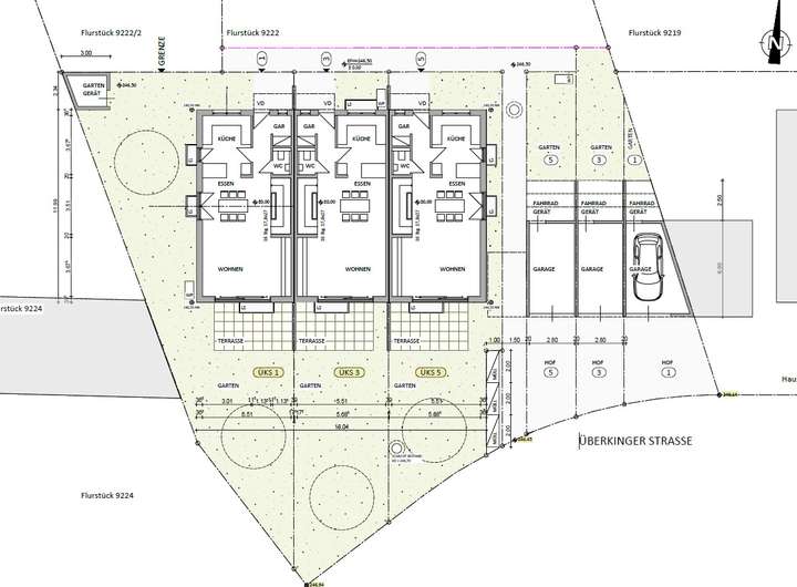 Die Erschließung der Grundstücke erfolgt vollständig über die Überkinger Straße.