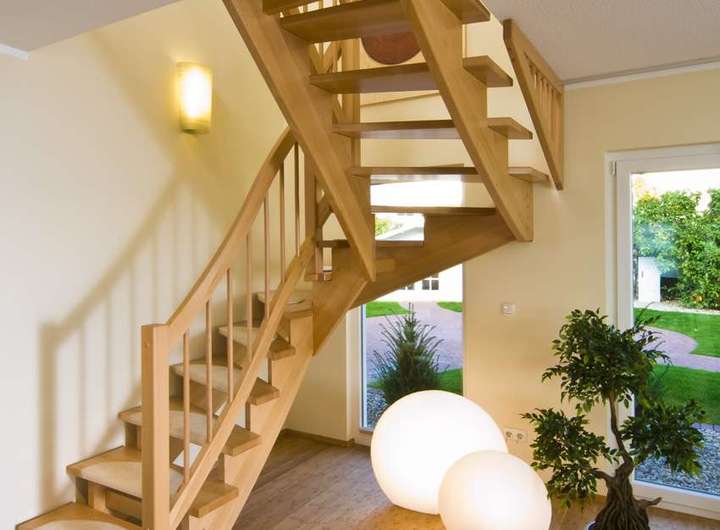 Viel Licht und Helligkeit bringt in diesem Bereich der Treppenraum mit wunderschöner Treppe, die in den Privatbereich in das Obergeschoss führt.