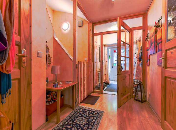 Auch hier bietet eines der Zimmer, durch die erfolgte Sanierung mit Lehmputz und Dreischicht-Eicheparkett, ein über dem Standard liegendes, angenehmes Raumklima.