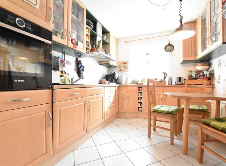 - ca. 8,73 m² große Küche mit solider heller Einbauküche