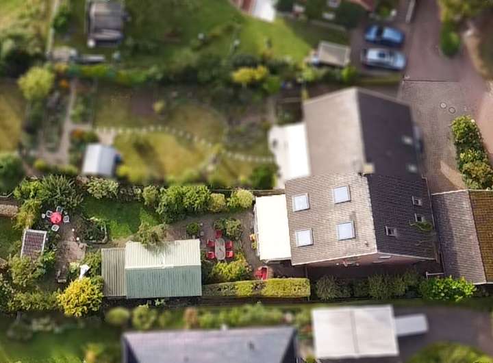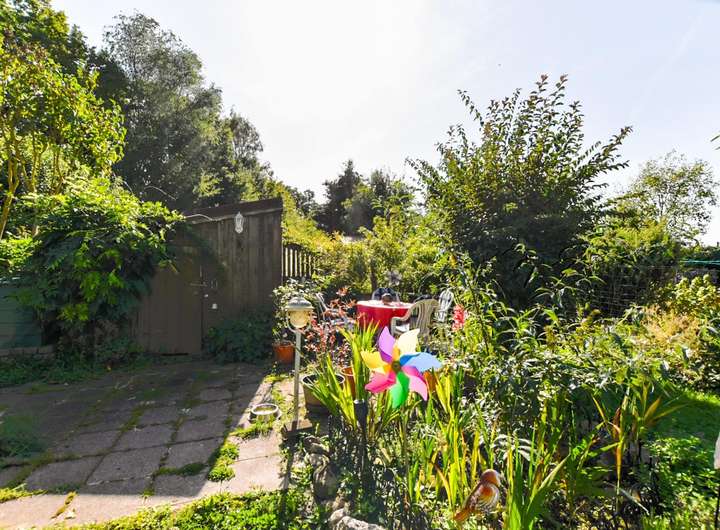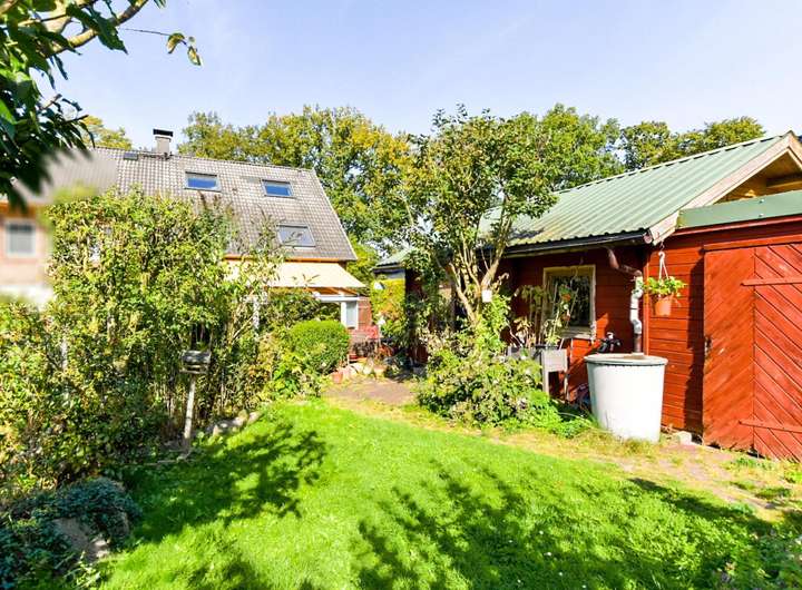 Im hinteren Teil des Gartens kann getobt und gespielt werden oder Sie pflanzen hier Ihr eigenes Gemüse.