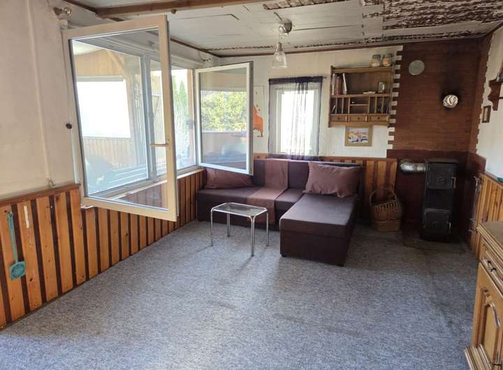 Der Bungalow ist sofort nutzbar, jedoch modernisierungsbedürftig. Das Dach besteht aus Wellblech-Asbestplatten. Teilweise wurden bereits Kunststofffenster eingebaut. Die Versorgung mit eigenem Strom und einer frostfreien Wasserleitung ist gewährleistet, Kraftstrom für z. B. Sauna auch möglich. Ein Tiefkanalanschluss ist nicht vorhanden. Beheizbar ist das Häuschen durch den vorhandenen Kaminofen. Der Einbau einer Pelletheizung oder Wärmepumpe wäre ebenfalls denkbar. Die Aufteilung erfolgte in Loggia, Wohnzimmer, Schlafzimmer, Küche und innliegendem Bad mit Dusche und WC.
