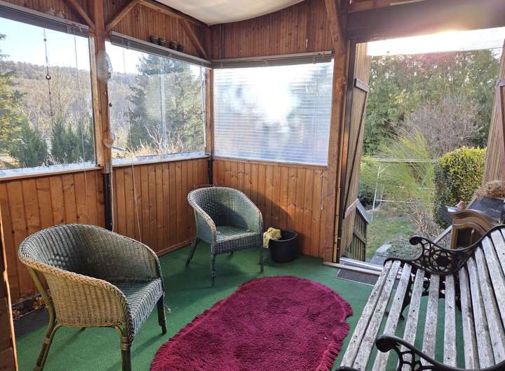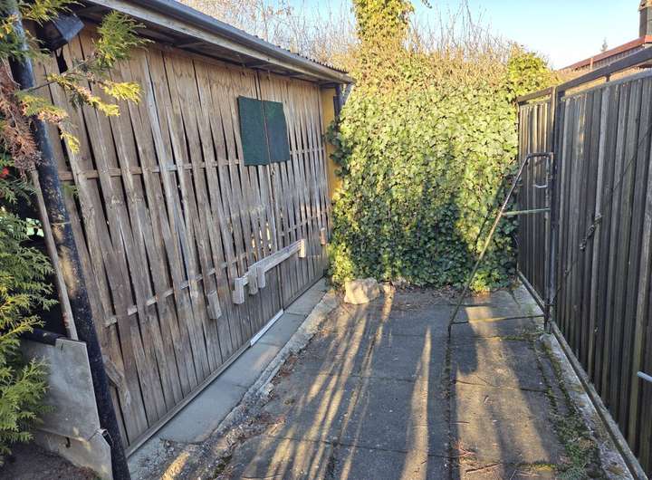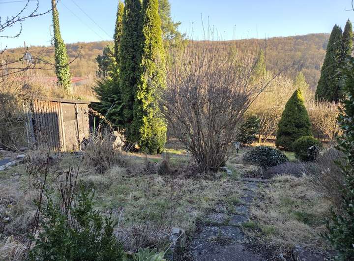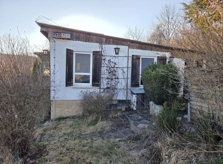 Drei Nachbarn und doch ungestört relaxen. Hier finden Sie das Pendent zur Großstadt – ein massiv gemauerter Bungalow mit vielfältigen Gestaltungsmöglichkeiten in Südhanglage und wunderschönem Blick in die Natur. Die seitlichen Anbauten sind für Lagerzwecke oder Gästeübernachtungen geeignet. Das Gebäude beinhaltet außerdem eine kleine Werkstatt. Zu Beginn des Grundstückes befindet sich eine selbst errichtete Garage aus Holz. Bepflanzt wurde es mit Ziergewächsen, kleinem Baumbestand und Koniferen. Die Grenze zum Nachbar besteht aus Hecken, geschützt vor neugierigen Blicken.