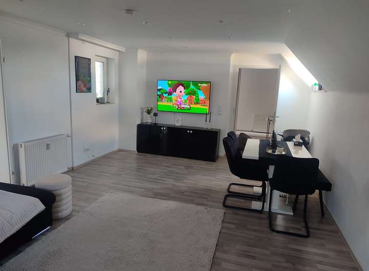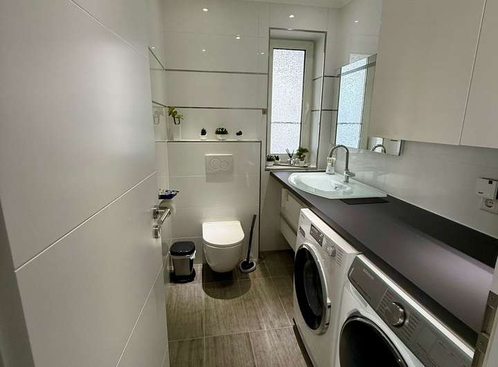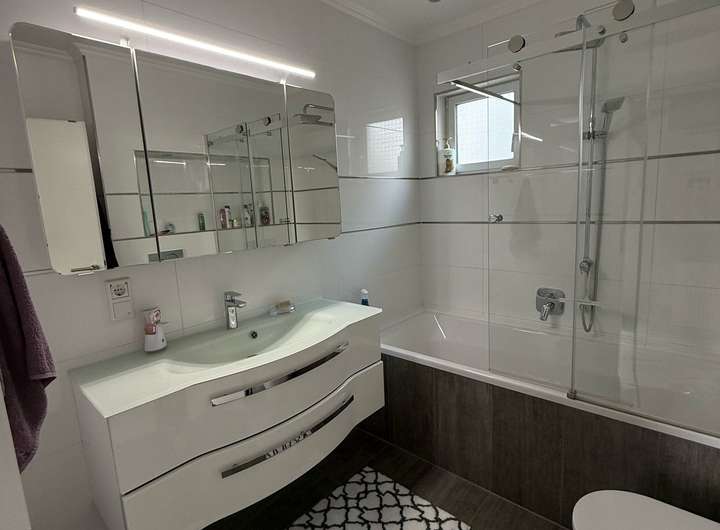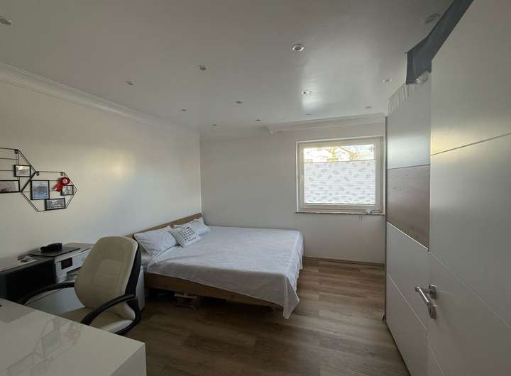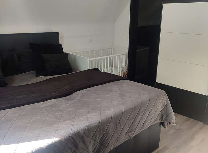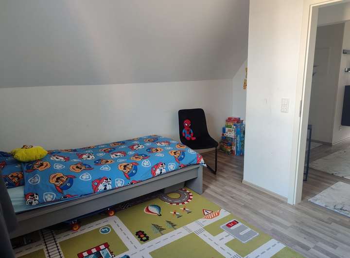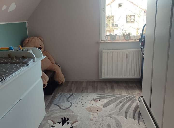 Die obere Etage ist derzeit vermietet und verfügt über eine 4-Zimmer-Wohnung mit Balkon. Die Mieteinnahmen betragen aktuell 1.400 € warm. Das Haus eignet sich auch hervorragend als Mehrgenerationenhaus, da beide Etagen über separate Eingänge verfügen.