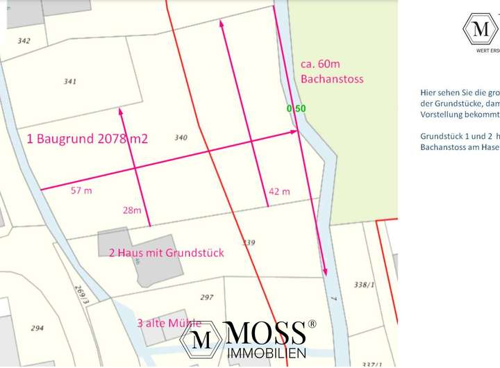 1. Ein Baugrundstück mit 2078 m2 Grundstück, 598'000€ Verhandlungsbasis