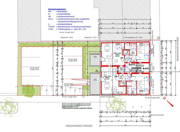 Ein qualifizierter Bauantrag wurde bereits eingereicht. Die Planung sieht den Bau eines modernen, voll unterkellerten Mehrfamilienhauses mit sieben Wohneinheiten vor: sechs großzügige Zwei-Zimmer-Wohnungen mit Balkon sowie ein exklusives Penthouse mit drei Zimmern und einer teilweise überdachten Dachterrasse. Die Architektur ist modern und klar strukturiert, die Grundrisse funktional und großzügig – ein Wohnkonzept, das zeitgemäßen Komfort und stilvolles Ambiente vereint. Die Wohnfläche von insgesamt 537,46m² teilt sich wie folgt auf: Erdgeschoss: WE01=74,15m², WE02=67,62m²; 1.Obergeschoss: WE03=74,15m², WE04=67,62m²; 2.Obergeschoss: WE05=74,15m², WE06=67,62m²; 3. Obergeschoss WE07=112,15m². Die genaue Aufteilung können Sie den beigefügten Grundrisszeichnungen entnehmen.