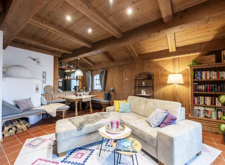 Das Haus erstreckt sich überwiegend auf einer Ebene und besticht durch seine durchdachte Raumaufteilung sowie die Verwendung von hochwertigen Materialien, insbesondere viel Holz, das für eine warme und einladende Atmosphäre sorgt. Die lichtdurchfluteten Wohnräume sind ideal für Singles, Paare oder auch Familien geeignet und bieten ausreichend Platz zum Entspannen und Wohlfühlen. Ein Kachelofen im Wohnbereich sorgt an kalten Tagen für wohlige Wärme und Gemütlichkeit.