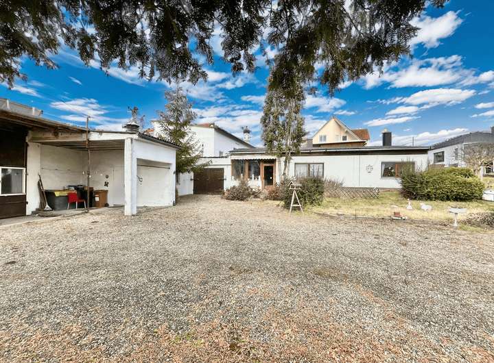 + teilunterkellerte Halle mit Galerie und Starkstromanschluss
