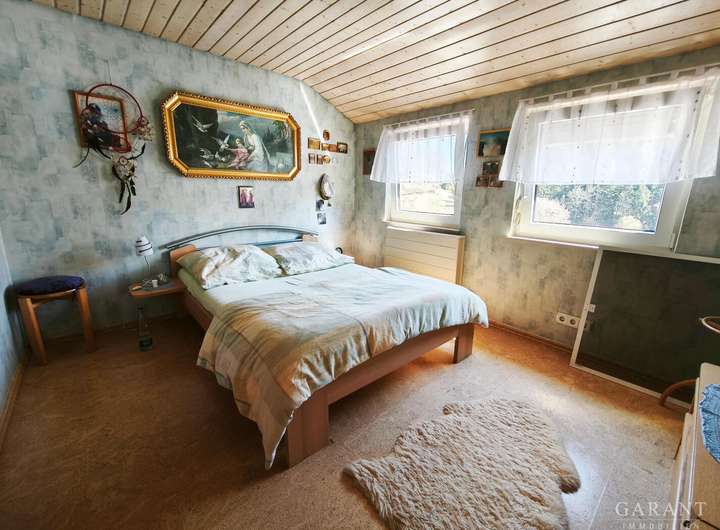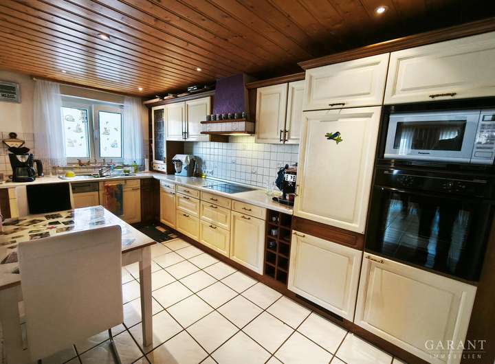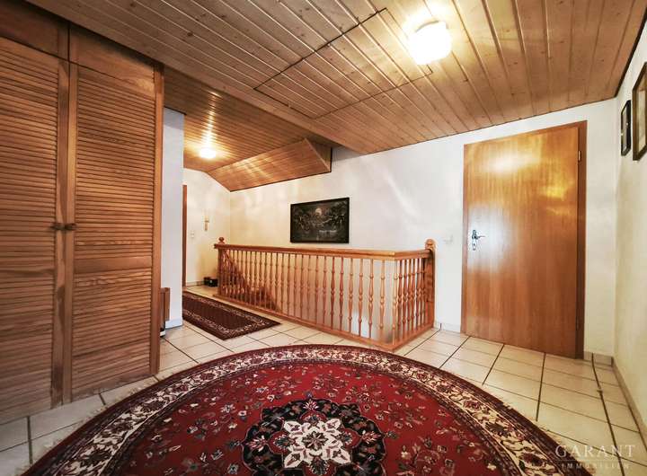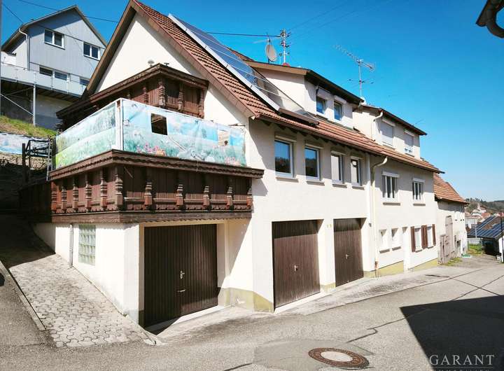 Historie: 1961 umgebaut als Haus mit Scheune erfuhr das Objekt einen großen Umbau im Jahr 1984. Hier wurde die ehemalige Scheune zu Garagen und Abstellräumen umgebaut. 1992 erfolgte ein weiterer großer Umbau des Anwesens. Hier wurden die Garagen erhalten, im Erdgeschoss sowie Dachgeschoss wurde Wohnraum erschaffen und der Balkon angebaut.