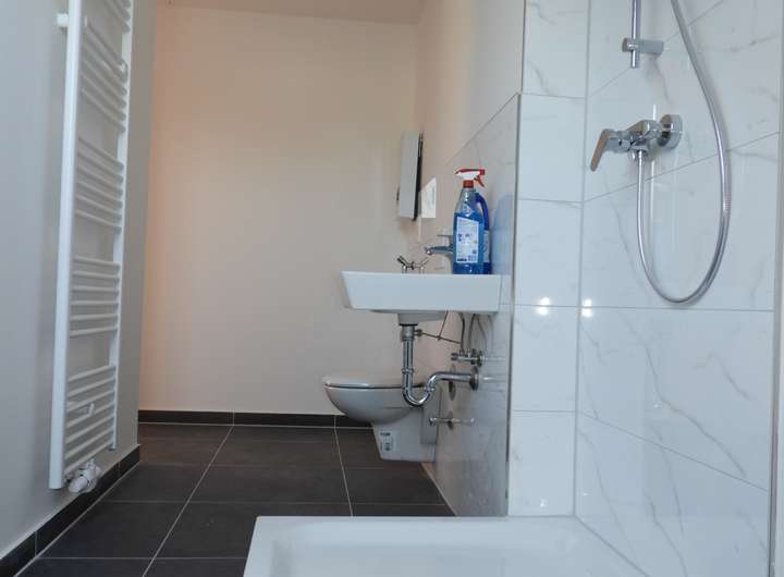 Bas Badezimmer ist ebenfalls groß mit einer Dusche ausgestattet.