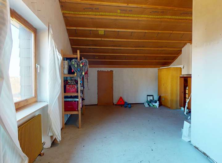 Beim Betreten dieses Hauses werden Sie von einer einladenden Atmosphäre begrüßt, die durch die gut erhaltene Architektur aus dem Jahr 1976 unterstrichen wird. Die durchdachte Raumaufteilung schafft ein Gefühl von Offenheit und Licht, während die Ausbaureserve im Dachgeschoss mit 2 weiteren Zimmern á ca. 28 m² zusätzlichen Raum für individuelle Gestaltungsmöglichkeiten bietet.