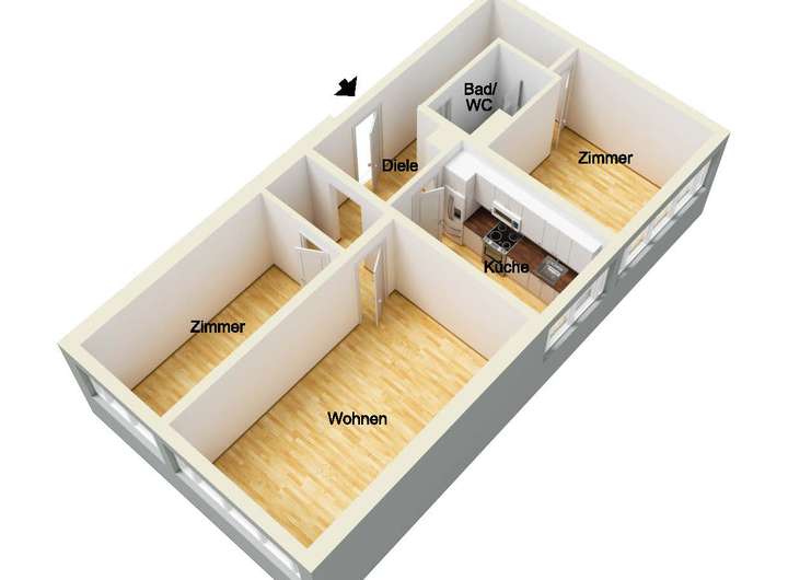 Willkommen in dieser ruhigen frisch sanierten und zentral gelegenen 3-Zimmer-Wohnung, die sich ideal für Geschäftsleute, Studenten oder Dauerurlauber anbietet. Die Wohnung befindet sich in einem gepflegten Hochhaus und bietet Ihnen eine komfortable Wohnfläche von ca. 64 m².