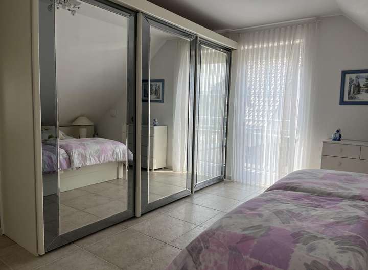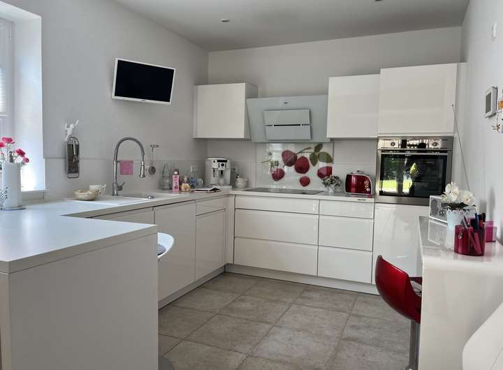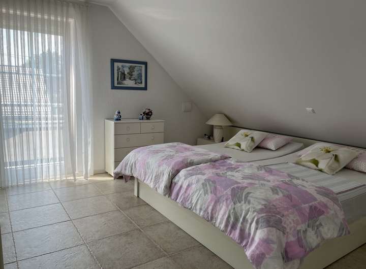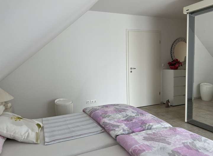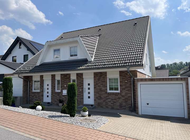 Zum Verkauf kommt ein Zweifamilienhaus, das 2014 als Dan-Fertighaus in einer ruhigen Seitenstraße in zentrumsnaher Lage von Kreuztal erbaut wurde. Die Wohnfläche verteilt sich auf 2 Haushälften mit jeweils Erd- und Dachgeschoss. In der rechten, eigengenutzten Hälfte mit einer Wohnfläche von ca. 118 m² stehen Ihnen im Erdgeschoss ein großzügiges Wohn/Esszimmer mit Zugang zur Terrasse, eine Diele, ein Gäste-WC und ein großer Abstellraum sowie ein Hauswirtschaftsraum zur Verfügung. Die moderne offene Einbauküche ist im Kaufpreis enthalten. Im Dachgeschoss erwartet Sie ein Schlafzimmer mit angrenzendem Ankleidezimmer, ein großzügiges Studiozimmer und ein Badezimmer. Die linke, vermietete Haushälfte mit einer Wohnfläche von ca. 85 m² verfügt im Erdgeschoss über Eingangsdiele, Küche, Gäste-WC und Wohn/Esszimmer mit Zugang zur Terrasse. Im Dachgeschoss stehen Ihnen Schlafzimmer, Kinderzimmer und Badezimmer zur Verfügung. Hier wurde aus Diskretionsgründen auf Innenaufnahmen verzichtet. Zu beiden Haushälften gehört jeweils eine angebaute Garage. Das Grundstück ist komplett und geschmackvoll angelegt, die Terrassen und der Garten sind nach Süden ausgerichtet. Die Immobilie befindet sich in sehr gepflegtem, neuwertigen Zustand und kann nach Absprache übernommen werden.