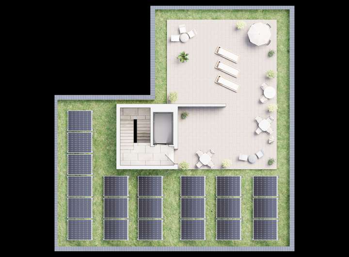 Treffen Sie Ihre Nachbarn und Freunde auf der gemeinschaftlichen Dachterrasse, dem perfekten Ort für entspannte "Meet & Greets" unter freiem Himmel.