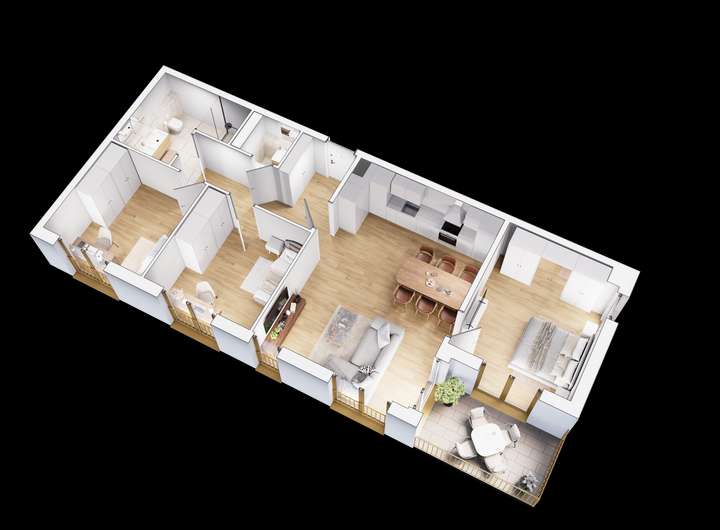 Die perfekt geschnittenen Grundrisse sorgen für eine optimale Raumnutzung und bieten viel Platz für Ihre individuellen Wohnideen. In den hervorragend geplanten offenen Küchen trifft sich die ganze Familie zu gemeinsamen Kochabenden und geselligen Momenten.