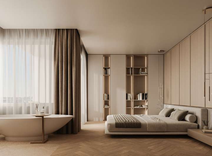 Ein weiteres Highlight ist das hochwertige Echtholzparkett aus Eiche, das Wärme und Eleganz verleiht. Die stilvollen Badezimmer überzeugen mit geschmackvoller Keramik und besonders schönen Fliesen, die Ihr persönliches Spa-Erlebnis abrunden.