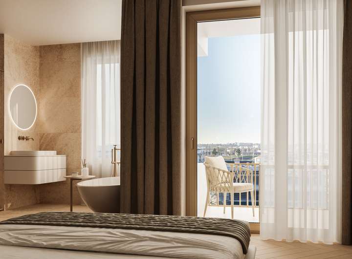Die Loggien mit variabler Verglasung ermöglichen eine ganzjährige Nutzung und erweitern den Wohnraum, sodass Sie bei jedem Wetter die frische Luft und den Ausblick genießen können.
