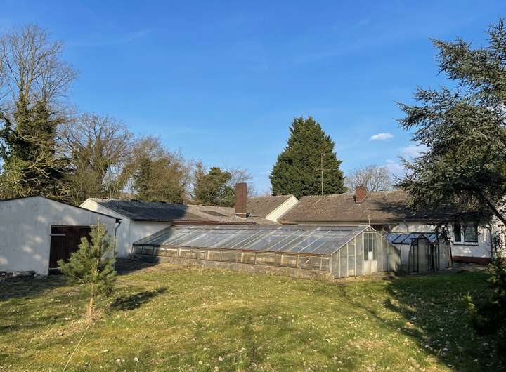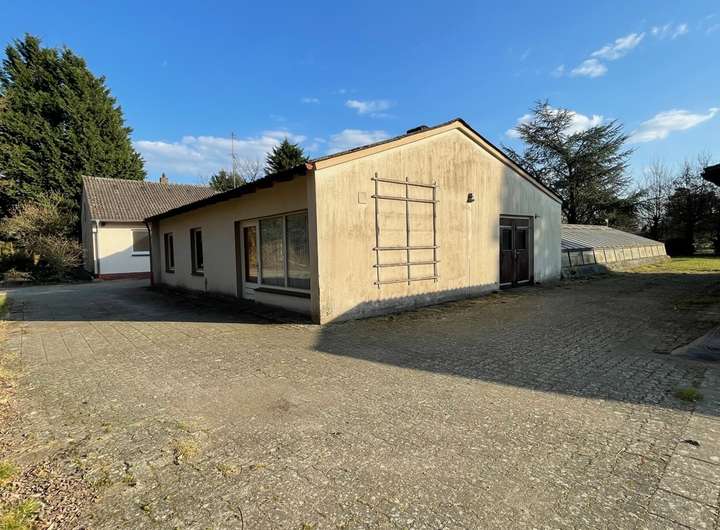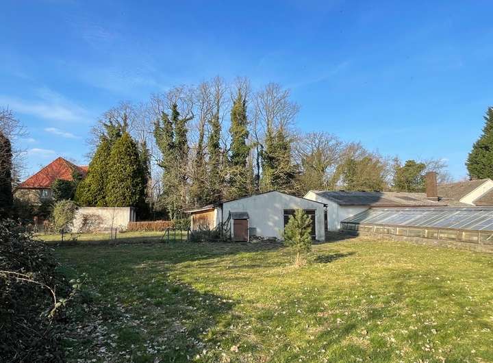 Im vorderen Grundstücksbereich befinden sich noch ein Wirtschaftsgebäude (ca. 115 m²), ein Schuppen (ca. 70 m²), zwei Fertig-Garagen sowie 2 alte Gewächshäuser (ca. 180 m²). Der hintere, ca. 2.500 m² große Bereich ist unbebaut (derzeit Gartenfläche).