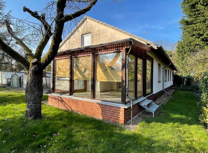 Dieses schön gelegene Zweifamilienhaus mit Teilkeller von 1966, erweitert 1985 mit Nebengebäuden aus einer früheren gewerblichen Nutzung befindet sich auf einem herrlichen, knapp 4.300 m² großen Wohngrundstück. Die beiden Wohneinheiten bieten zusammen rund 200 m² Wohnfläche (ca. 112 und 88 m²) und insgesamt 7 Zimmer. Das Haus ist teilmodernisiert.