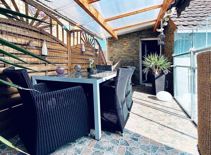 Der gepflegte Außenbereich rundet das Angebot ab: Ein schöner Garten lädt zum Entspannen und Spielen ein, und auch für gemütliche Abende im Freien ist hier der perfekte Ort.