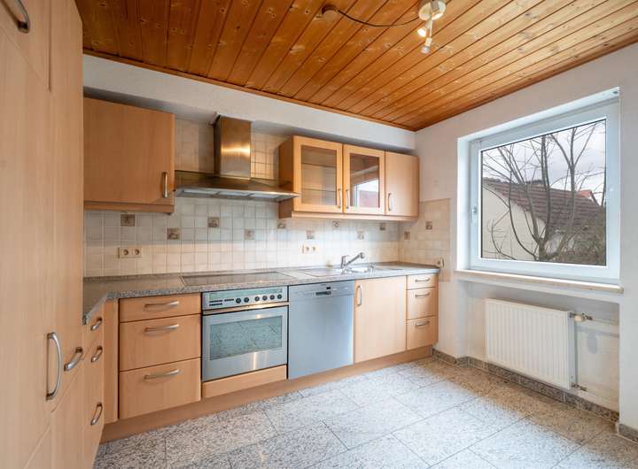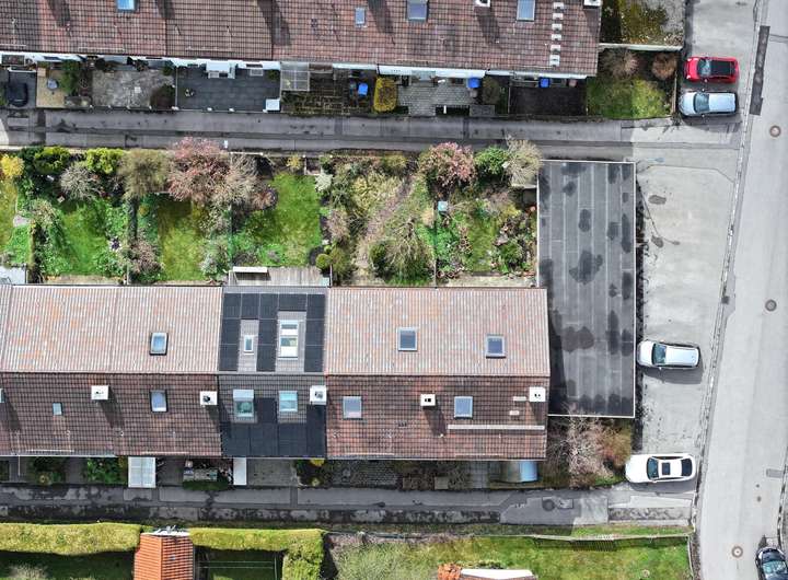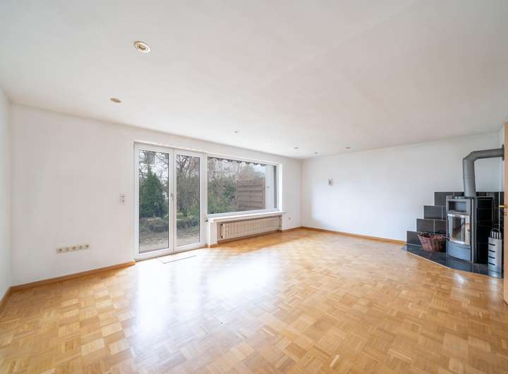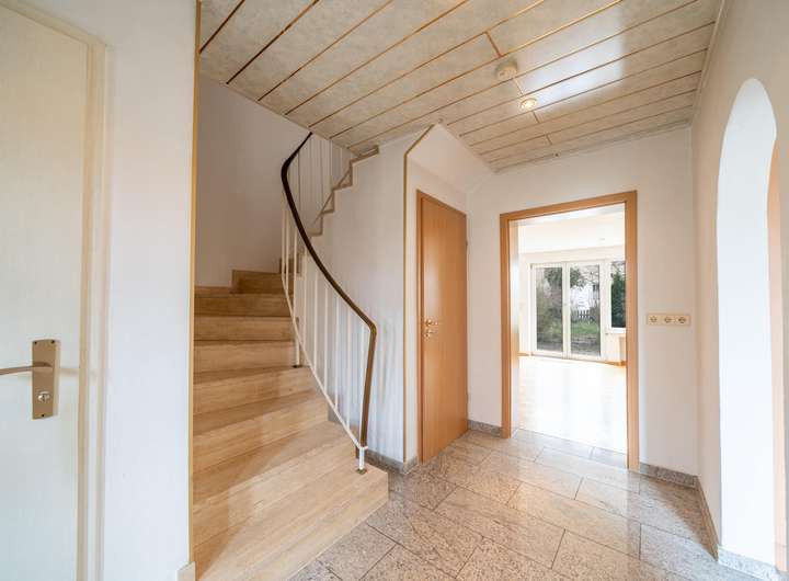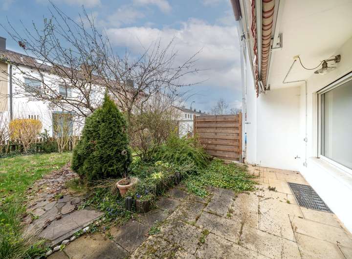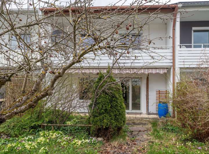 Dieses großzügige Reihenmittelhaus wurde im Jahre 1970 in massiver Bauweise errichtet und überzeugt mit einer durchdachten Raumaufteilung. Große Fensterfronten sorgen für helle, freundliche Räume und einen schönen Blick in den weitläufigen Südwest-Garten mit Terrasse. Im Erdgeschoss befinden sich eine moderne Wohnküche, ein ca. 29 m² großes Wohnzimmer sowie weitere Abstell- und Lagerflächen.