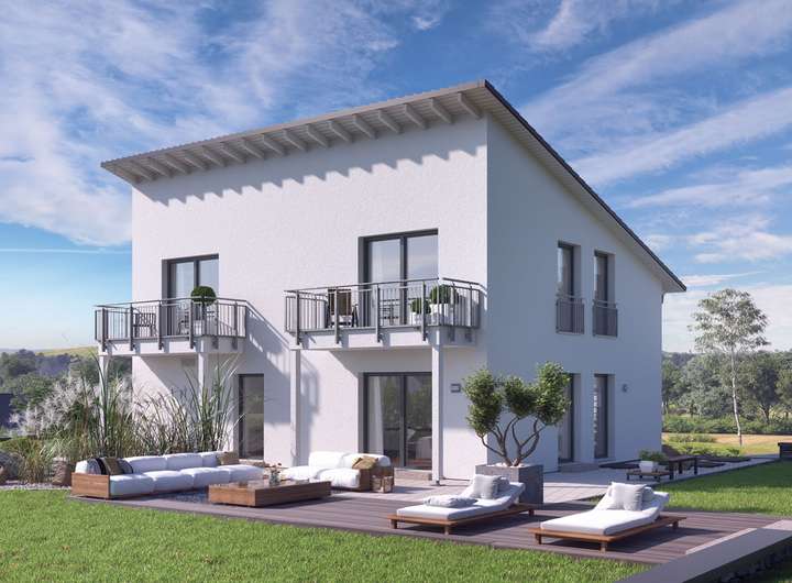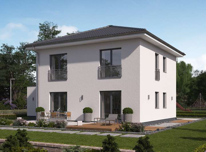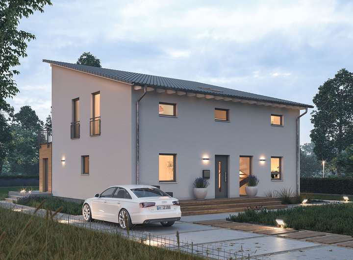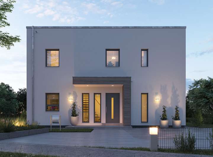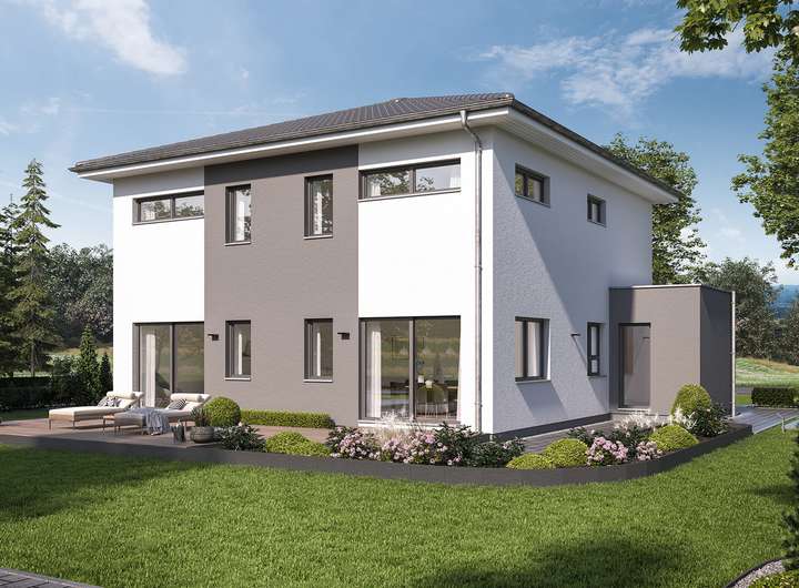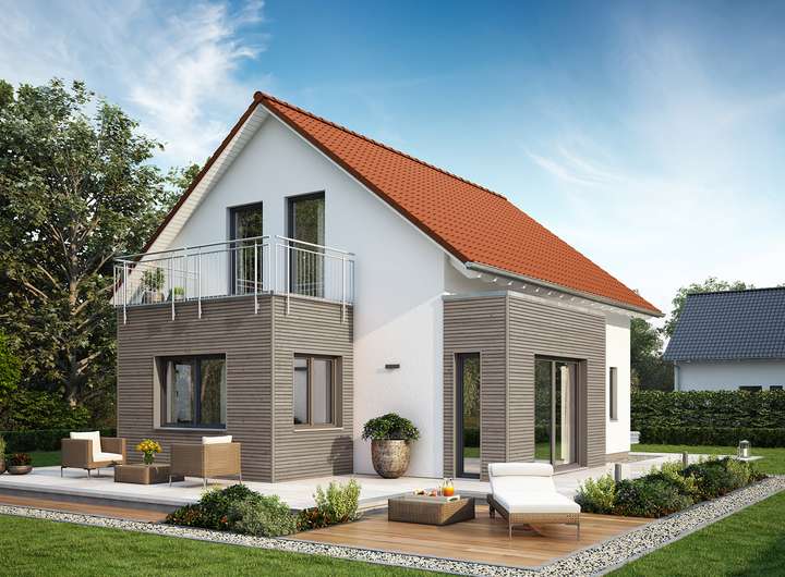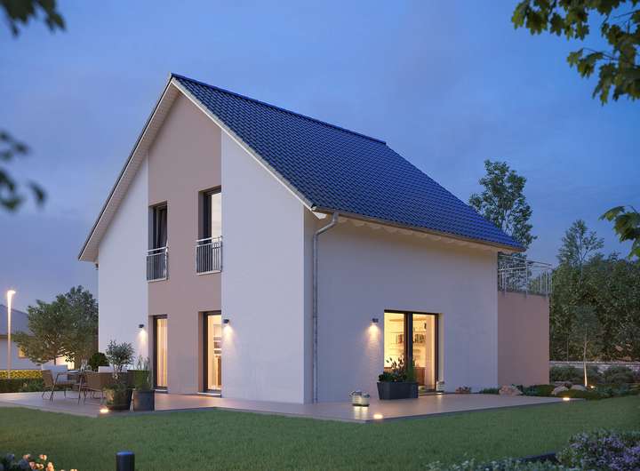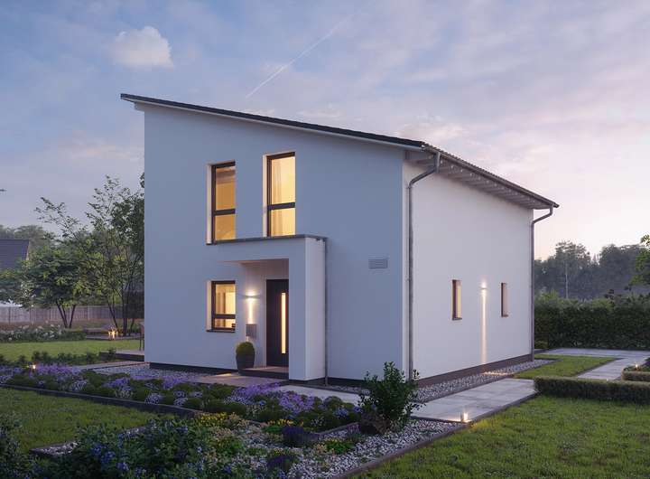 Hinweis: Die abgebildeten Innen- und Außendarstellungen sowie Sonderausstattungen dienen lediglich der Veranschaulichung und können von der tatsächlichen Ausführung abweichen. Der angegebene Preis versteht sich exklusive der in den Beispielbildern gezeigten Sonderausstattungen. Die Konfiguration deines Traumhauses erfolgt individuell und kann an dein Budget und deine Wünsche angepasst werden.