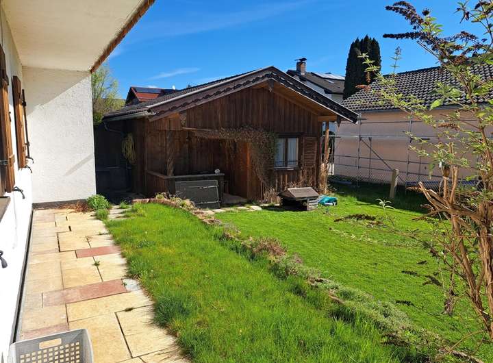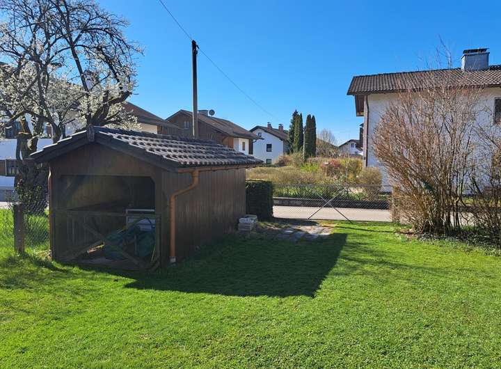 Ein großzügiges Gartenhaus sowie eine Anhängergarage gehören mit dazu.
